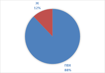 Рисунок 1. Процентное соотношение ПВХ и железных труб на Нурафшанском водораспределительном сооружении