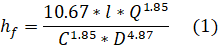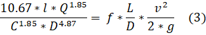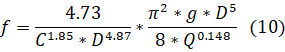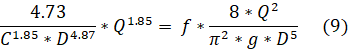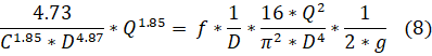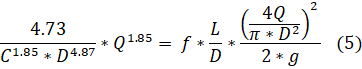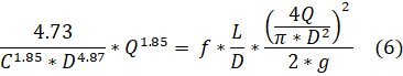Приравняем уравнения Хазена–Уильямса и Дарси–Вейсбаха.:[3,4,5]
