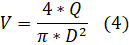 L сокращается с левой и правой стороны, а скорость V выражается через расход Q: