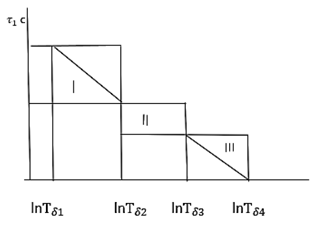 Figure 1 illustrates the dependence of the heating and cooling time of the drum rim on the natural logarithm of the excess temperature ln Tδ