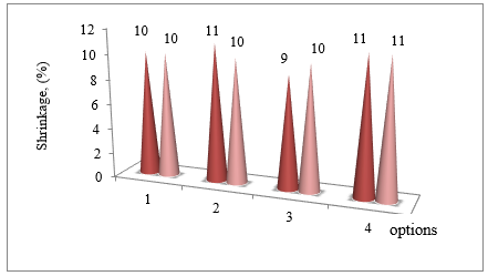 By length shrinkage of cotton-bamboo blended two-layer knitted fabrics showed that sample II, made from 100% bamboo, exhibited less shrinkage at 8% compared to the other two samples.
