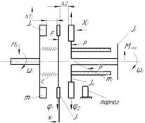 где F – приведенная сила по координате Х1, Н; Мф – момент трения фрикционов, Н·м. При выборе зазора Δ1 между фрикционами, обобщенная сила по координате: /Dustova.files/image022.png)