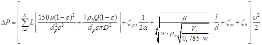 Here ∆Pd.q is the pressure lost on the working surfaces of the cascade plate, which can be determined using the equation proposed by Ergun, Pa;