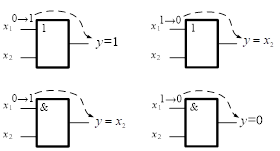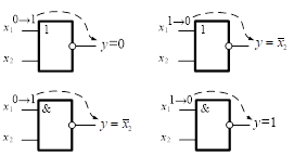 Рисунок 3. Зависимые и независимые выходы логической комбинационной схемы