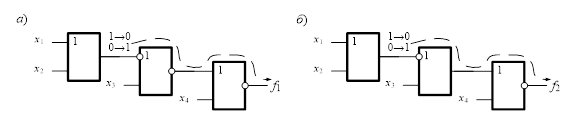 Рассмотрим комбинационные схемы на рис. 4, а и б, которые реализуют следующие булевы функции: /Abdullaev.files/image016.png)