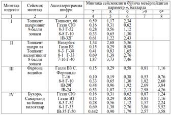 При использовании динамического метода расчета сейсмические воздействия для отдельных районов принимаются по таблице 1. Для приведения ускорения к заданной сейсмичности амплитудные значения акселерограммы умножаются на нормирующий параметр η. Кроме того, расчетные ускорения колебаний грунта должны определяться с учетом категории ответственности проектируемого здания (сооружения) и интервала повторяемости землетрясений. При этом амплитуды ускорений акселерограммы, соответствующие заданной сейсмичности, корректируются с введением коэффициента ответственности Ко и коэффициента повторяемости Кп. [1]
