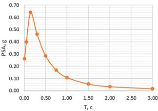Рисунок 4. Спектральные амплитуды ускорений колебаний грунта на площадке строительства Объекта, отвечающие различным периодам повторения сотрясений: Т=475 лет (Р=0.9)