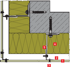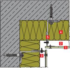 Рисунок 2. а – Дефект тонкого сечения, б – Дефект углового сечения: 1 – облицовочная панель, 2 – вентилируемая воздушная прослойка, 3 – крепежный элемент, 4 – теплоизоляционный материал, 5 – элементы подконструкции