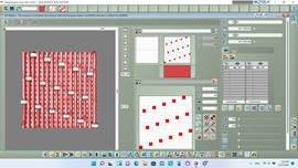 Программа ткачества полутораслойной ткани шелк+полиэстер, созданная в программе MuCAD немецкой компании Karl Mayer. Базовая программа ткачества полутораслойной двухсторонней одежной ткани 8/3 сатин и 16/11 сатин была разработана в программе Design Scope Victor немецкой компании EAT Design Scope. На следующем рисунке показан 3D-изображение программы и поверхности сатинового переплетения 8/3.
