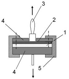 1 – полимерная пленка, 2 – печатная краска, 3 – металлический «грибок», 4 – металлические пластинки, 5 – струбцины [6]