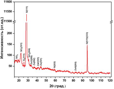 Рисунок 3. Рентгенограмма образца Si<Zn> при Т=1100 °С, t=3 ч., с быстрым охлаждением