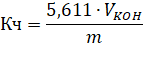Для определения кислотного числа сначала пробу масла растворяли в нейтрализованной смеси этанола и диэтилового эфира (1:2). Этиловый спирт используют не только для растворения, образующегося в процессе титрования мыла, но и для устранения обратной реакции — гидролиза мыла. В колбу вместимостью 100 мл отвешивали на аналитических весах около 3 г растительного масла, добавляли 50 мл спиртово-эфирной смеси (1:2) и вносили 1–2 капли спиртового раствора фенолфталеина. Анализируемый раствор осторожно оттитровали (по одной капле) 0,1 Н водным раствором гидроксида калия до слабо-розового окрашивания. Кислотное число (КЧ, мг КОН/г) определяли по формуле: