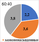 Среднее содержание жирных кислот использованных масел приведены в таблице 2.
