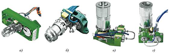 Рисунок 3. Внешний вид однокомпонентных двигателей малой тяги, а - 50-10.1; б - К50-10.5; в - ТК500М; г - ТК500МД