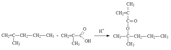 В данной статье исследована радикальная сополимеризация изогексилметакрилового эфира с виниловыми мономерами. Для получения непредельного сложного эфира — изогексилметакрилового эфира (ИГМАК) проводили реакцию этерификацию 2-метил-1-пентена с метакриловой кислотой [5; 9]. Схему реакции образования сложного эфира в присутствии серной кислоты осуществляли следующим образом: