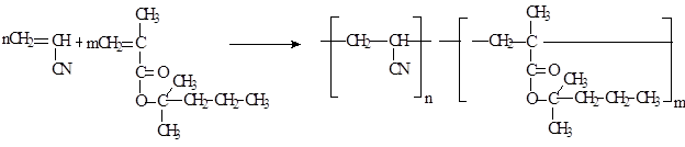 Основные параметры полимеризации в растворе: температура — 50–70 °С; продолжительность — 2–4 ч. Синтез бинарного сополимера на основе акрилонитрила с изогексилметакриловым эфиром протекает по механизму цепной радикальной полимеризации в три стадии с использованием в качестве: инициатора – ДАК.