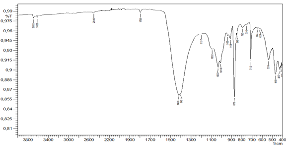 Рисунок 2. ИК-спектр (FTIR) базальтов месторождения «Osmonsoy-1»