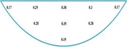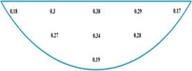 The average fluid velocities along the verticals in the selected sections were measured using a microrotor. The results are shown in the figure below.