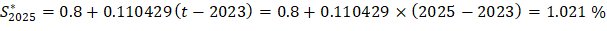 This slope arises from the scenario endpoint S₂₀₃₀ = 1.573% (i.e., ). We report k and display the trend in Fig. 1. Because this series is a deterministic scenario (not stochastic field replicates), formal confidence intervals are not inferable; the uncertainty discussion is moved to Limitations.