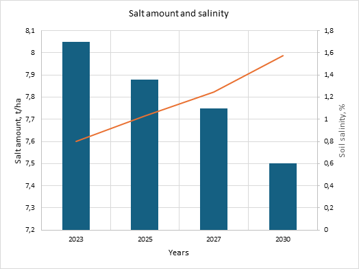 FORECASTING SOIL SALINITY DYNAMICS UNDER CONSTANT WATER MINERALIZATION AND REDUCED IRRIGATION VOLUMES (KHOVOS DISTRICT, 2023–2030)