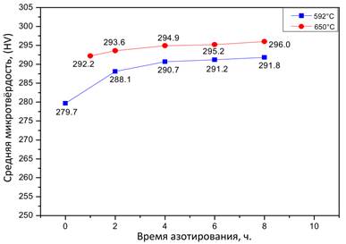 Этот результат отличается от данных исследования M. K. Lee [4], однако соответствует результатам азотирования в ванне KNO₃ [5, 6].