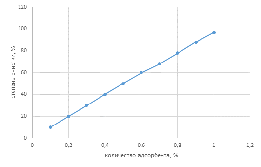 Рисунок 1. Зависимость степени очистки от количество вводимого адсорбента
