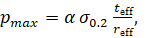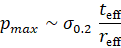 (с поправкой на геометрию и трёхмерность), поэтому для максимального давления введем соотношение: