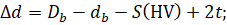 Натяг ∆d при одном и том же диаметре бушинга db (если после обжима не применяется мандрел) определяется диаметром пули Db, упругой отдачей дульца наружу S и средней толщиной дульца t: