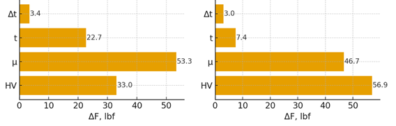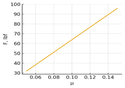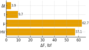 С коэффициентом μ сложнее. Это не «чистое» трение материалов, по которому много справочников, а эффективный параметр, включающий смазку, шероховатость, эллипсоидность, конусность, локальные дефекты и неоднородности, преодоление осевого сопротивления на границе расширения дульца и др. Определять μ удобнее из решения обратной задачи по измеренному усилию посадки F. Мы сознательно используем усилие посадки F (а не «выдёргивания» пули), поскольку его проще и стабильнее измерять, например, на AMP Press с тензодатчиком, а затем соотносить с усилием страгивания.