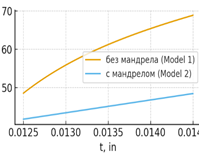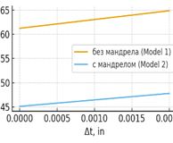 , т. е. при ∆t = 0.0005" дульце работает примерно как равностенное с толщиной t + 0.0002".