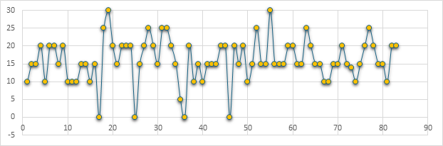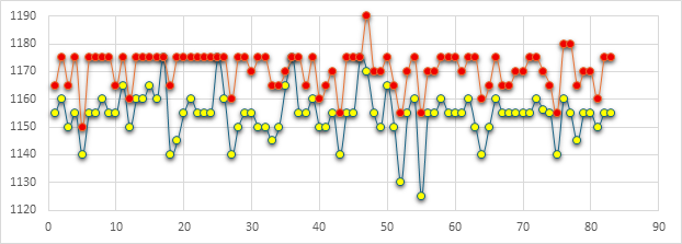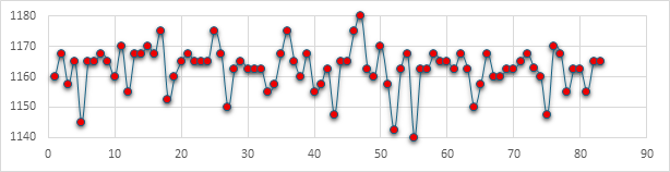 Рисунок 20. динамика изменения усилия посадки пули (каждый третий цикл)