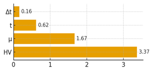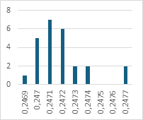 В нашей модели получилось, что разброс факторов HV, t, ∆t и μ объясняет значительную часть от общего разброса усилия посадки пули, остальное влияние относится к неучтенному остатку, задаваемому суммарной ошибкой ε, при этом многие неучтенные факторы εi (например, дефекты в геометрии гильзы) тесно коррелируются с учтенными в модели. Для определения закона и параметров распределения случайной функции ε необходимо накопить достаточный объем информации. Величина ε будет определяться как разница между наблюдаемым и расчетным значениями разброса.