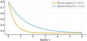 ч. За ~2–3 часа мелкая гранула практически выходит на ~0,27 %, крупная — к 6 часам опускается до ~0,27–0,28 %.