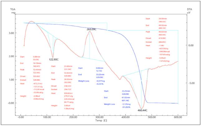 Термический анализ (TGA/DTA/DTG) композиции на основе AOP PE-1: влияние температуры и времени на скорость потери массы и термические эффекты. Анализ кривой TGA: температурно-временные стадии и потеря массы (Риc. 1).