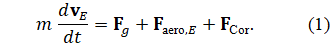 из таблиц. - Собирает силы (гравитация, аэродинамика, кориолис) — (1–4).