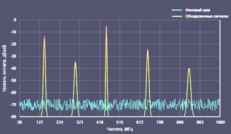 Рисунок 2. Визуализация спектрального анализа сигналов ПЭМИН в диапазоне 30-1000 МГц