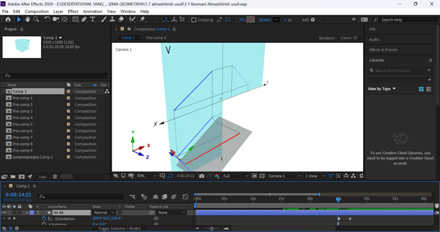 Для экспериментальной группы были разработаны специализированные анимационные модули в среде Adobe After Effects CC 2020, охватывающие две наиболее сложные темы курса начертательной геометрии: