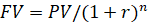 где FV – стоимость денежных потоков сегодня; PV – текущая стоимость денежного потока; r – процентная ставка, начисляемая за один период (год); n – количество периодов начисления (лет).