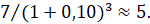 При ставке дисконтирования 10% и сроке анализа 5 лет определим по формуле: