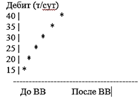 Рисунок 2. Рост дебита скважин после вибровоздействия