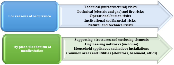 Classification of risks during operation of apartment buildings, their causes and by location, mechanism of occurrence