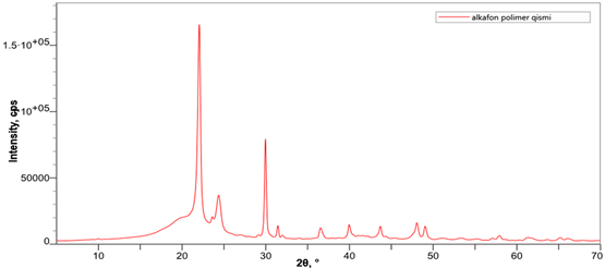 Пики около 2θ ≈ 26,6° соответствуют основным пикам кварца (α-SiO₂). В диапазоне 35–50° спектра наблюдаются несколько небольших пиков; которые относятся к вторичным/вспомогательным рефлексиям карбонатных и силикатных фаз. Через количественный анализ XRD установлена массовая доля полимерного состава (рис. 4).