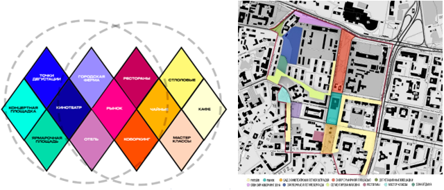3) сформировать состав компонентов и функционально-планировочную инфраструктуру гастрокластера на основе потенциала территории апробации, с возможностью их адаптации для других районов Казани.