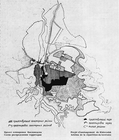 Источник: А. Галактионов и В. Арманд Проект планировки курорта Кисловодска. / Советская архитектура, № 12, 1936 – С. 30.