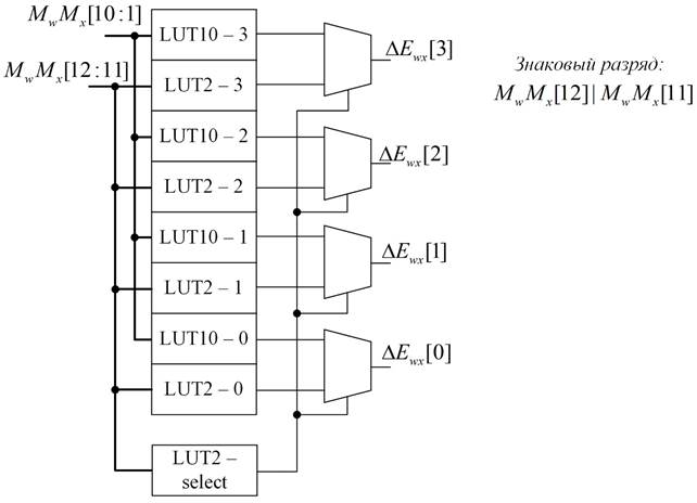 обрабатываются отдельно таблицами истинности LUT10 и LUT2, в результате чего формируются два варианта
