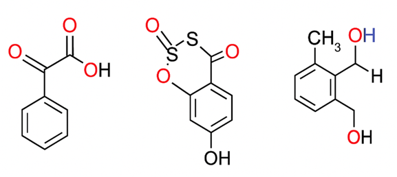 Рисунок 4. Исходная молекула ацетилсалициловой кислоты и два сгенерированных структурных аналога, полученные с использованием алгоритма мутации SMILES