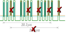 - перекрывающиеся импульсные последовательности (garbling);