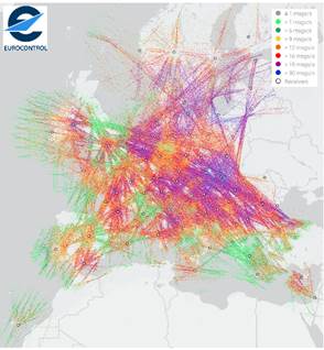 Представленные данные EUROCONTROL наглядно демонстрируют высокую плотность и хаотичность распределения ответов Mode S в европейском воздушном пространстве. На карте показано, что даже в пределах одной секунды фиксируется значительное число коротких и длинных сообщений Mode S, формируемых как в режиме All-Call, так и в режиме селективного опроса. Такая концентрация импульсных ответов приводит к усложнению декодирования, повышает вероятность наложений и создаёт нагрузку на наземные приемники, особенно в зонах пересечения трасс. Так как доступ к каналам 1030/1090 МГц ограничен, в то время как объём обмена непрерывно растёт, это формирует предпосылки для частых коллизий, повторных запросов и увеличения числа All-Call транзакций. Это подтверждает выводы о том, что Mode S, несмотря на независимую адресацию и селективный опрос, функционирует в условиях перегруженной среды и остаётся уязвимым к интерференции, garbling и FRUIT (рисунок 4)[1].