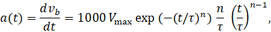 задан в миллисекундах, а скорость — в м/с) даёт вид зависимости ускорения:
