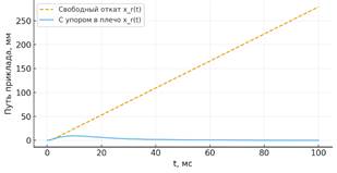 , полученного из 0D/1D-модели внутренней баллистики или программ QuickLOAD, GRT и аналогичных [1–4, 7, 8, 14, 15], построена простая одномерная модель системы «винтовка – приклад – плечо – опора», позволяющая:
